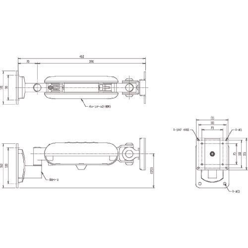 【特長】●アーム部は上下75°ずつ可動し、モニター取付部はチルト(30°ずつ)、スイベル(90°ずつ)、回転(360°)の機能が付いています。●垂直面(壁面など)に対して固定するタイプです。●VESA75ミリ、100ミリどちらのモニターにも取り付け可能です。●21インチクラスまでのモニターに対応しています。
