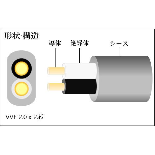 TRUSCO VVF2c×2.0mm VAケーブル 15m 蛍光黄