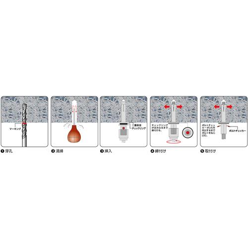 【特長】●イージーアイアンカー EZIは各規格・仕様(公共建築工事)に適合した、電動工具による簡単な施工と施工者が施工完了を目視で確認でき、管理者が施工管理を目視で確認できる機能を持つ懸垂取付用あと施工アンカーです。●2種類の機能で施工完了を目視で確認。 1、チェックリングの採用で市販のソケットとインパクトドライバーで施工が出来、施工完了が目視で出来る。2、ボルトチェッカーにより吊りボルトのねじ込み確認が出来る。●国土交通省監修:公共建築設備工事標準図(機械設備工事編)・電気設備工事管理指針に適合する「おねじ形メカニカルアンカー」※EZI-3045CN適応