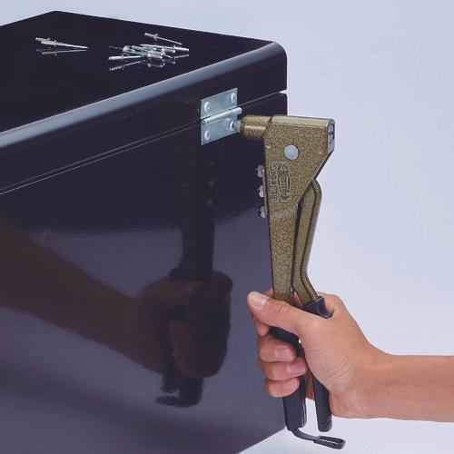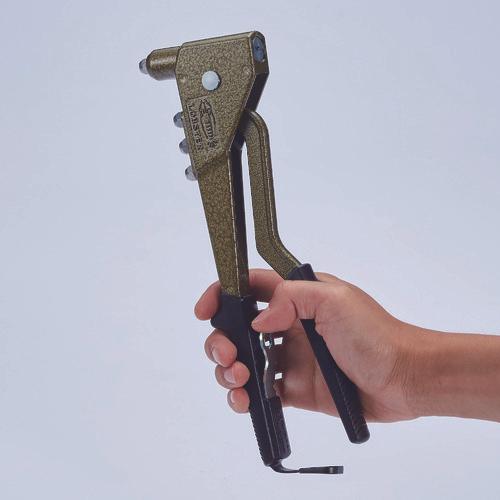 【特長】●ソフトグリップのハンドルは握りやすく設計されており、強いブラインドリベットも楽に切断できます。●握らなくてもリベットが落ちないリベット保持機能付です。