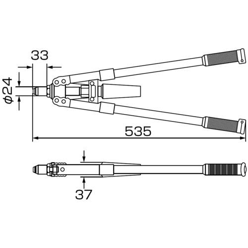 【仕様】●全長(mm):535●使用ジョー:JL(大)●リベット径使用範囲(mm):4.8、6.4(オプション部品により2.4、3.2、4.0も対応可能)