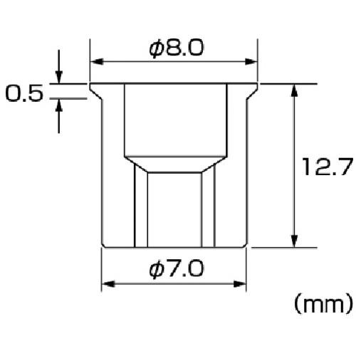【仕様】●かしめ板厚(mm):1.0~3.2●下穴径(mm):7.1●適用ねじ:M5×0.80●ナット外径(mm):7●全長(mm):12.7●フランジ厚さ(mm):0.5