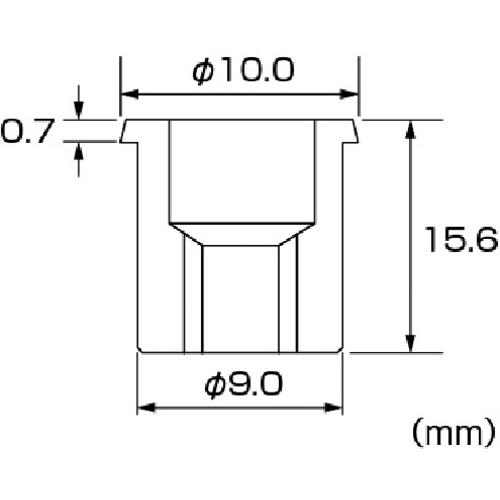 【仕様】●かしめ板厚(mm):2.0~4.0●下穴径(mm):9.1●適用ねじ:M6×1.00●ナット外径(mm):9●全長(mm):15.6●フランジ厚さ(mm):0.7●材質