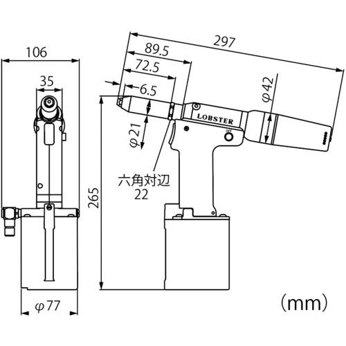【仕様】●全長(mm):265●使用ジョー:CJM(超硬質中)●リベット径使用範囲(mm):2.4、3.2、4.0、4.8●エアー消費量(L/min):68