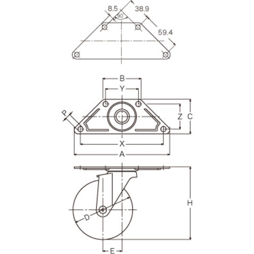 Home › HAMMER CASTER Co.,Ltd. › ハンマー プレート式コーナーキャスター 旋回式ゴム車輪 65mm 220E-R65 HAMMER CASTER