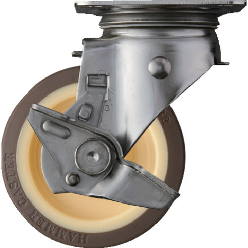 Home › HAMMER CASTER Co.,Ltd. › ハンマー Sシリーズオールステンレス 旋回式ウレタン車輪(ローラーベアリング)100mm ストッパー付 313S-UB100 HAMMER CASTER