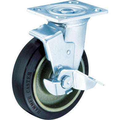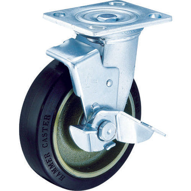 ハンマー 静音旋回式ゴム車輪(ナイロンホイール・ラジアルボールベアリング)125mm ストッパー付