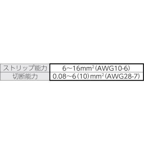 【仕様】●全長(mm):190●適合電線([[MM2]]):6~16●切断能力:0.08~6(10)mm[[の2乗]](AWG28-7)