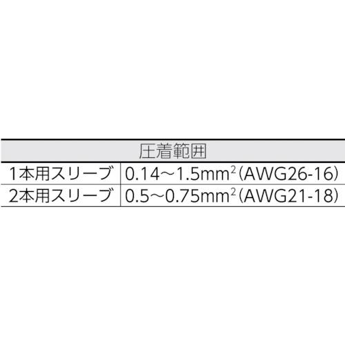 【仕様】●全長(mm):170●圧着範囲:スリーブ1本用 0.14~1.5[[MM2]](AWG26~16)スリーブ2本用 0.5~0.75[[MM2]](AWG21~18)●圧着範囲(1本用スリーブ):0.14~1.5[[MM2]](AWG26-16)