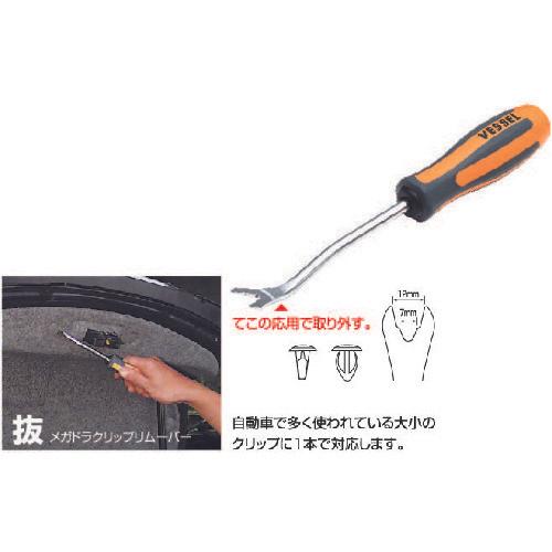 【特長】●刃先は大小2種類兼用タイプです。●グリップを回してこじることも可能です。●板金塗装部に傷を付けないようすべりをよくしたクロムメッキ仕上げです。●自動車で使われている多くのクリップに対応しています。●ドアトリム部や配線止めクリップなど、狭い場所でも作業がしやすい最適な角度です。