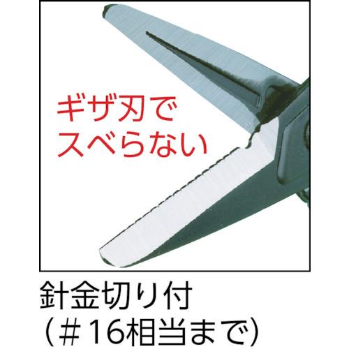 【特長】●ギザ刃で切るものを滑らずに切断することが可能です。●カシメ近くに針金切りがついており、なまし針金#16相当まで切断可能です。