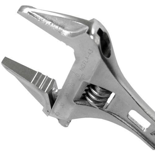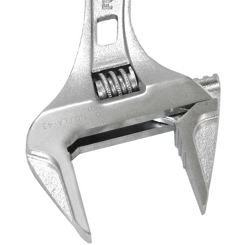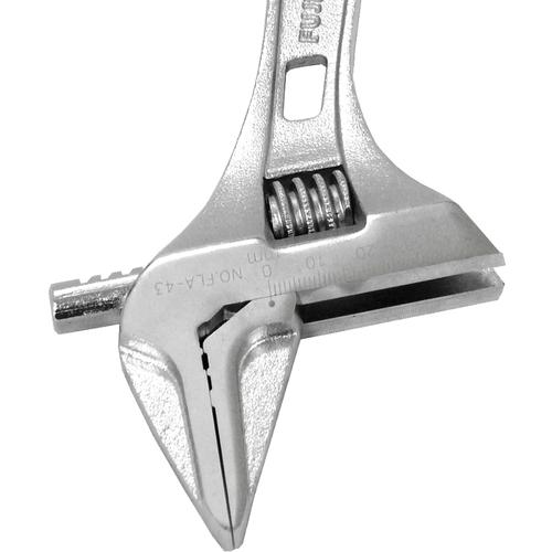 【特長】●軽量・薄型タイプかつワイドな開口です。●狭い場所でさまざまなサイズのボルトを回すのに最適です。●0mmまで閉じるので、小さいものまでしっかりとつかめます。●目盛付です。●でっぱりが少なく狭い場所でも使いやすくなっています。●ボルトやナットの角を傷つけにくい独自形状です。