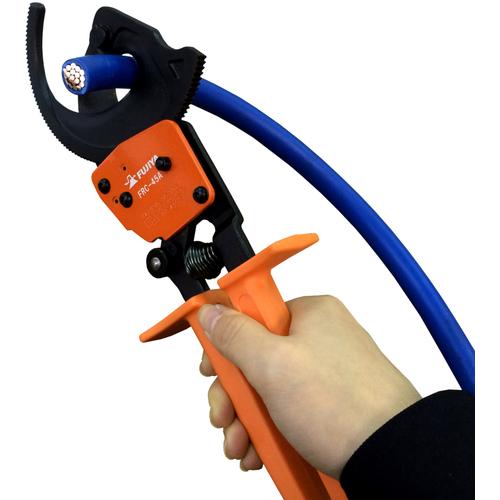 【特長】●太いケーブル線の切断専用工具です。●切断中、万が一途中で解除する場合はストッパーを手前に引き上げるとラチェットをフリーの状態にすることが可能です。