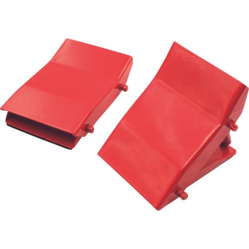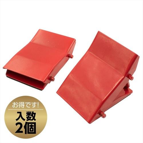 ●駐車時やジャッキアップの際に、車輌が動かないようタイヤへ設置する、折りたたみタイプの輪止めです。