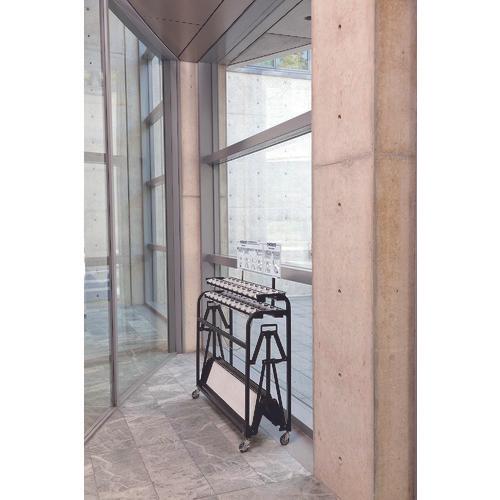 ●折りたたみ時は通常の約半分の奥行になり、折りたたんだままで自立します。