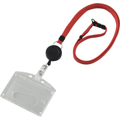 緑十字 吊り下げ名札(リール式ストラップ) クリア/赤 ハードケース 2枚収納式 吊名札346R 300041 GREEN CROSS