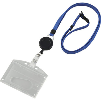 緑十字 吊り下げ名札(リール式ストラップ) クリア/青 ハードケース 2枚収納式 吊名札346BL 300042 GREEN CROSS
