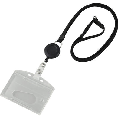 緑十字 吊り下げ名札(リール式ストラップ) クリア/黒 ハードケース 2枚収納式 吊名札346BK 300043 GREEN CROSS