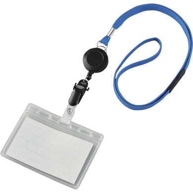 緑十字 吊り下げ名札(リール式ストラップ) クリア/青 ソフトケース 2枚収納式 NF−418−BL 301101 GREEN CROSS