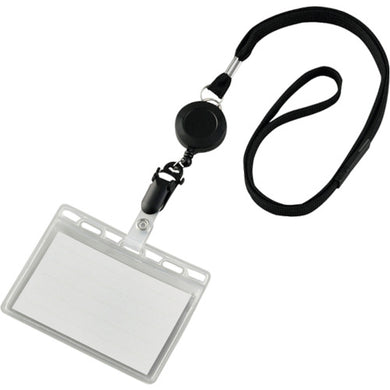 緑十字 吊り下げ名札(リール式ストラップ) クリア/黒 ソフトケース 2枚収納式 NF−418−BK 301103 GREEN CROSS