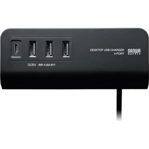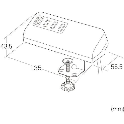 【仕様2】●定格入力:AC100V(50/60Hz)●定格出力:DC5V/4.8A(4ポート合計最大)●USB Aポート:DC5V/2.4A(1ポート最大)、USB Type Cポート:DC5V/3.0A(1ポート最大)●ポート数:USB Type Cポート×1ポート、USB Aポート×3ポート●コード長:約2m●クランプ対応厚:天板の厚さが10~40mmまで