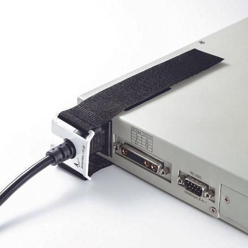 【特長】●不意のケーブル抜けを未然に防ぎます。●工具不要で簡単に取り付け可能です。●AC電源プラグが誤って抜けるのを防止します。●I/Oロックベルトは、プラグを押えるマジックフッカー付面ファスナー凹面と機器側に取付ける粘着付面ファスナーの凸面の組合わせで構成されています。●面ファスナーは、凹側、凸側共に取付ベースに合わせて加工ができます。