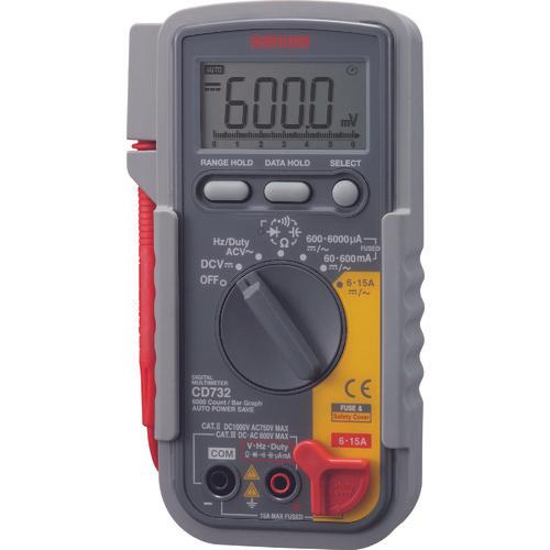 【特長】●テストリードを側面に収納可能です。●データホールド、レンジホールドボタン付。●液晶部にバーグラフ搭載。●最大表示:6000カウント