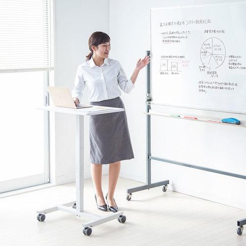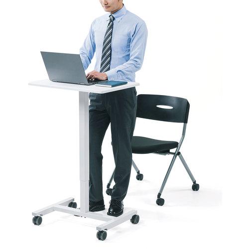 ●座り作業、立ち作業が行えるパーソナルデスクです。