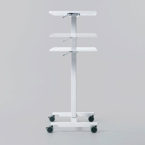 ●機器を載せたままの移動はしないで下さい。落下する恐れがあります。耐荷重以上機器や荷物は載せないで下さい。使用する際は天板を下方へ押さえつけないようにしてください。