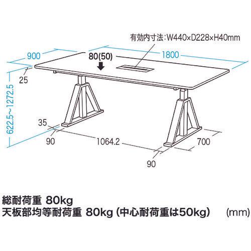 ●天板は高さH622.5~1272.5mmまで可動します。