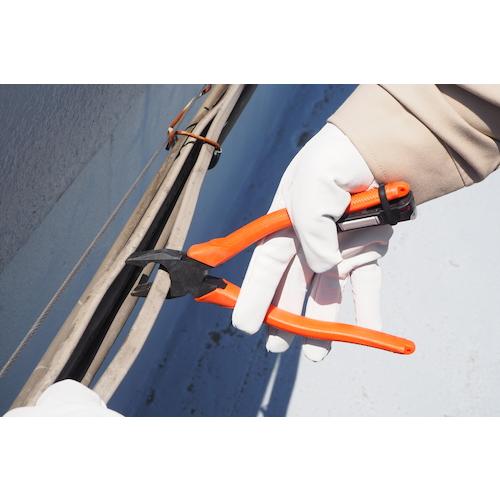 【特長】●配線切断時の活線状態が音と光でひと目でわかります。●ケーブル切断工具に取り付ける活線センサです。●絶縁手袋(皮手袋他)を装着していても静電容量で結合するため絶縁物でも使用できます。