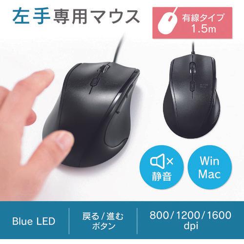 【特長】●マウスの右側面にサイドボタンを搭載した、左利き専用の有線マウスです。●左右クリック、サイドボタンに静音スイッチを採用しています。●用途に合わせてカーソルスピードを800・1200・1600・2400カウントに切り替えることができます。●カウント切り替えボタンを押すだけのスピード簡単切り替えです。●差し込むだけで使える手間なし簡単接続です。●面倒なソフトのインストールが不要です。●USB3.1/3.0/2.0インターフェースでもご使用になれます。