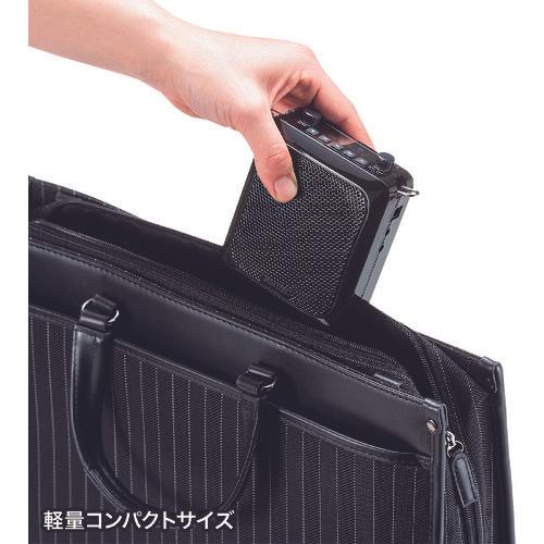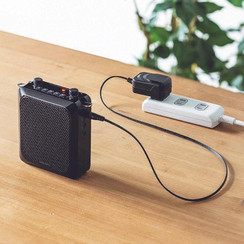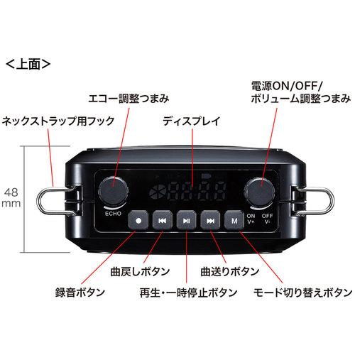 【特長】●体にスピーカーとヘッドマイクを装着することで両手が自由に使えるハンズフリー拡声器スピーカーです。●軽量でコンパクトサイズなので、ツアーガイドやイベント、講義や店頭販売など様々なシーンでアクティブに使用することができます。●実用最大出力14Wのハイパワーで大きな音量ではっきりと拡声させることができます。●ヘッドマイク付きでマイク部はフレキシブルアームとなっており自由に動かすことができます。●USBメモリやmicroSDカードに保存されたMP3音楽データを再生可能です。●同時にマイク音声出力もできます。●外部音声入力も搭載しており、スマートフォン・iPhoneからの音楽再生をしながら同時にマイク音声出力することも可能です。●エコー効果調整機能も搭載しており自分の声にエコーをかけることが可能です。