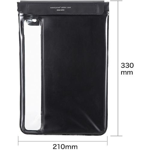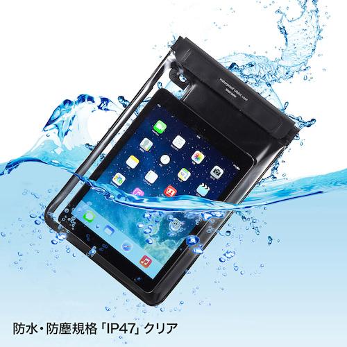 【特長】●水や汚れを気にせず、12.9インチまでのタブレットを収納できるケースです。●折りたたみ式のスタンド機能付です。●タブレットを収納したまま、カメラ撮影が可能です。●お風呂、キッチン、プール、アウトドアなど水や汚れのある場所でもタブレットを使用することができます。●持ちやすいハンドベルト付です。●肩にかけて持ち運びしやすい長さ調節可能なストラップ付です。●ストラップは縦・横どちらでも取り付け可能です。