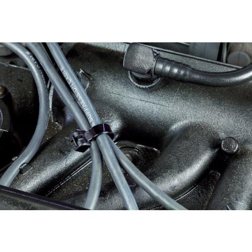 [Specifications] ● Color: Black ● Width (mm): 2.5 ● Length (mm): 200 ● Thickness (mm): 0.87 ● Maximum binding diameter (mm): 55 ● Tensile strength (N): 180 ● Minimum binding Diameter (mm): 2 ●Once tightened, it cannot be removed unless cut. ●Length (m) ●Applicable strap ●Applicable tie