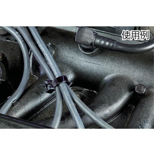 [Specifications] ● Color: Black ● Width (mm): 7.5 ● Length (mm): 360 ● Thickness (mm): 1.53 ● Maximum binding diameter (mm): 101 ● Tensile strength (N): 800 ● Minimum binding Diameter (mm): 6 ●Once tightened, it cannot be removed unless cut. ●Length (m) ●Applicable strap ●Applicable tie