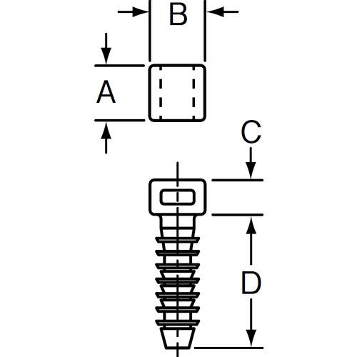 [Specifications] ● Color: Black ● Length (mm): 14.0 ● Width (mm): 13.5 ● Height (mm): 7.4 ● Width of binding band used (mm): 2.3 to 8.9 ● Hole diameter (mm): φ9. 5 - Fixing method: push - A (mm): 14.0 - B (mm): 13.5 - C (mm): 7.4 - D (mm): 30.5