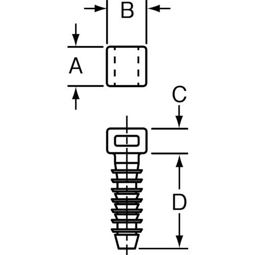 [Specifications] ● Color: Black ● Length (mm): 9.1 ● Width (mm): 9.9 ● Height (mm): 6.1 ● Cable tie width (mm): 2.3 to 4.8 ● Hole diameter (mm): φ5. 0 - Fixing method: push - A (mm): 9.1 - B (mm): 9.9 - C (mm): 6.1 - D (mm): 24.1