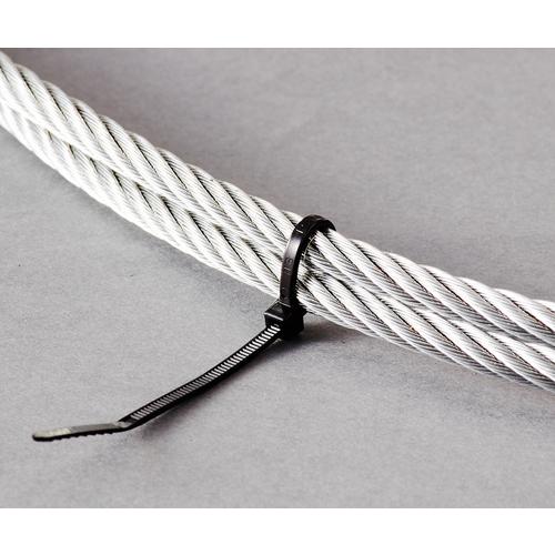[Specifications] ● Color: Black ● Width (mm): 2.5 ● Length (mm): 99 ● Thickness (mm): 1.1 ● Tensile strength (N): 80 ● Maximum bundle diameter (mm): 22 ● Tighten once You can't remove it unless you cut it off.