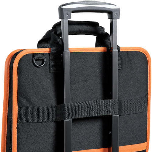 [Features] It opens wide for easy removal of tools. There is a zippered document storage compartment. There is a loop on the back so it can be attached to the handle of a suitcase. It is made of durable nylon material.