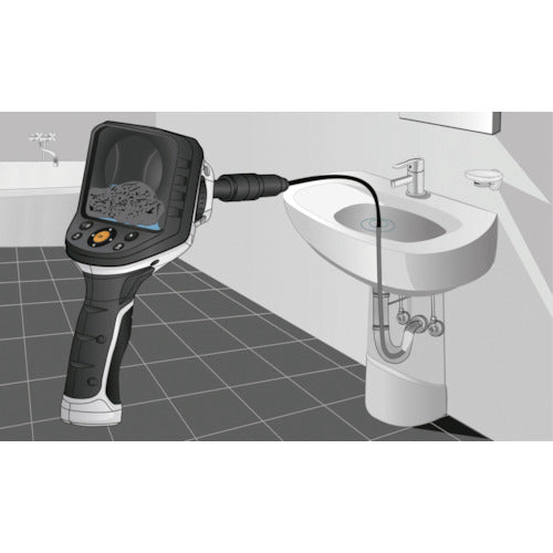 [Features] It is equipped with a "Smart View Function" that allows you to read characters and position the top, bottom, left and right of the inside of pipes by adjusting the dial, and can also move the main body to instantly correct the rotation. 9mm diameter, 10m camera cable 3.5-inch color display Still images (JPEG) and videos (AVI) can be recorded and saved (up to 16GB, SD cards can be used) Fully waterproof IP68 camera cable 2x digital zoom Camera with built-in LED (5 levels of brightness adjustment) Monitor Output