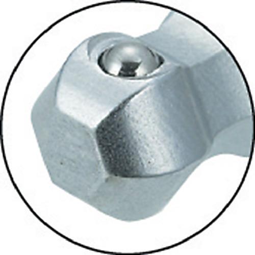 [Features]●By changing from 90° to 100°, it is possible to secure a maximum bending range of 5 times or more compared to conventional products, making it suitable for tightening work in narrow spaces. ●By making it a short neck, it is possible to approach bolts with no space in the height direction. ● With a catcher ball at the tip (3 mm or more). ●Hardness is HRC53-57. ●The material is chrome vanadium steel. ●The bending angle has been widened from the conventional 90° to 100° so that the fingertips do not touch the bottom surface during use, further enhancing ease of use. ●The length of the short side is set to about 1/2 of the conventional standard, which is effective for work in narrow spaces.
