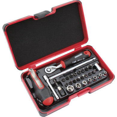FELO 1/4 Socket Wrench Set with T-type compatible driver handle, 29 pieces, 6081506 FELO