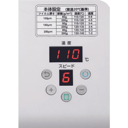 [Specification 2] ●Width x depth x height: 535 x 180 x 100mm ●Warm-up time: 1 minute 30 seconds ●6 rollers ●Functions: digital setting, sleep mode, auto reverse & reverse switch ●A3 size ●Power cord Length: 1.85m