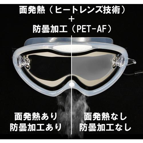 [Features] ● Prevents fogging by generating heat on the lens surface. ●Heat lens technology prevents moisture from adhering to the inner surface of the lens. ●We adopt cloudy weather stopping double lens. ●It is a lightweight rechargeable battery that can be used continuously for about 4 hours. ●It is a silicone frame that can be used with eyeglasses. ●It is "SR belt" realizing quick wearability. ●Always new vision, with tear-off lens.