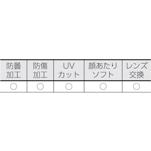 [Specifications] ●Lens color: clear ●Frame color: transparent gray ●Lens thickness (mm): 2.0 ●Width (mm): 185.25 ●Height (mm): 86.13 ●Anti-fog treatment: ○● Scratch resistance treatment: ○● UV protection: ○ Face soft: ○ Lens replacement: ○ Type: No visor Compatible lens: TSG-501SP