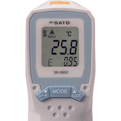 [Features]●Dustproof and waterproof structure that complies with JIS C 0920 IP54, so it can be operated even with wet hands. ●Since the measurement area is displayed with a circle marker, the measurement point can be determined at a glance. ●Emissivity can be set in steps of 0.01. ● Abundant functions: MAX (highest value), MIN (lowest value), AVG (average value), DIF (temperature difference between MAX and MIN) can be displayed. ●Buzzer notifies you when the set upper limit or lower limit is exceeded. ●In manual measurement, pull the measurement trigger to measure. ●When the measurement trigger is released, the display is fixed (HOLD) for about 1 minute, and the power is automatically turned off. ●Continuous measurement is possible with the measurement trigger released in the auto setting. ●With backlight and auto power off function.