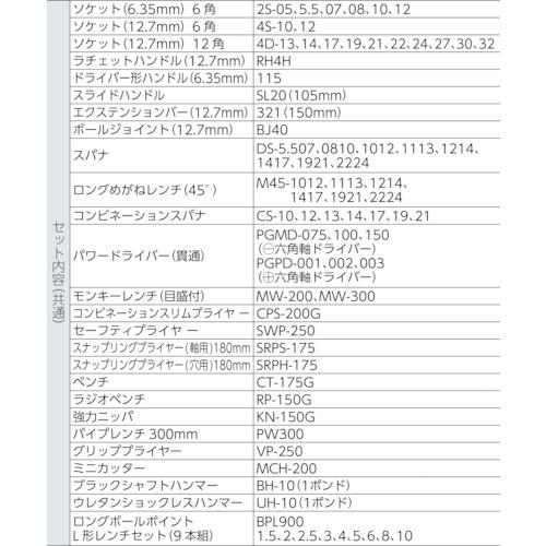 [Specifications] ● Set contents (points): 73 ● Set contents: Tool set only ● Drawer internal dimensions (mm) Frontage x Depth x Height ● Case dimensions (mm) Frontage x Depth x Height: -