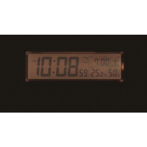 [Features] ●A radio-controlled clock that can measure temperature and humidity with a single unit. ●Equipped with a lighting function that makes the LCD shine when an alarm is set. ●It is a radio-controlled watch with a horizontal design that makes it easy to see the time. ●When the alarm is set, the LCD will automatically turn on.