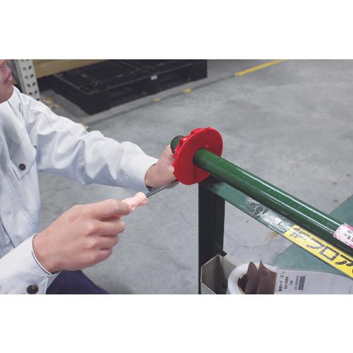 【特長】●台車ハンドル部での指挟み対策として最適な製品で、危険表示色の赤色で危険ゾーンの握りを防止します。●危険な台車ハンドル角部での操作を制御し、ハンドルの内側を握るように徹底できます。●適合ハンドル外径内であればさまざまな台車に対応し、付属のビスで簡単に取り付け、固定が可能です。